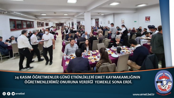 24 KASIM ÖĞRETMENLER GÜNÜ ETKİNLİKLERİ EMET KAYMAKAMLIĞININ ÖĞRETMENLERİMİZ ONURUNA VERDİĞİ YEMEKLE SONA ERDİ.