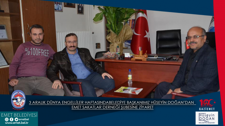 Belediye başkanımız Hüseyin Doğan Emet sakatlar derneği şubesini ziyaret ederek başkan İbrahim Özdekin şahsında tüm engelli vatandaşlarımızın haftasını kutladı