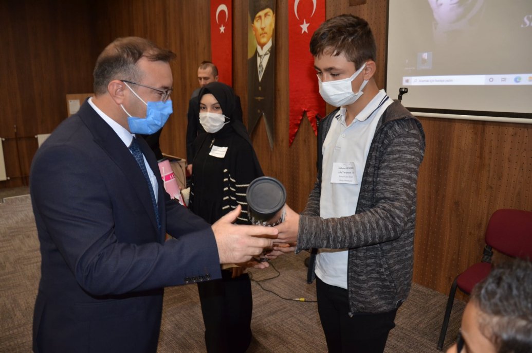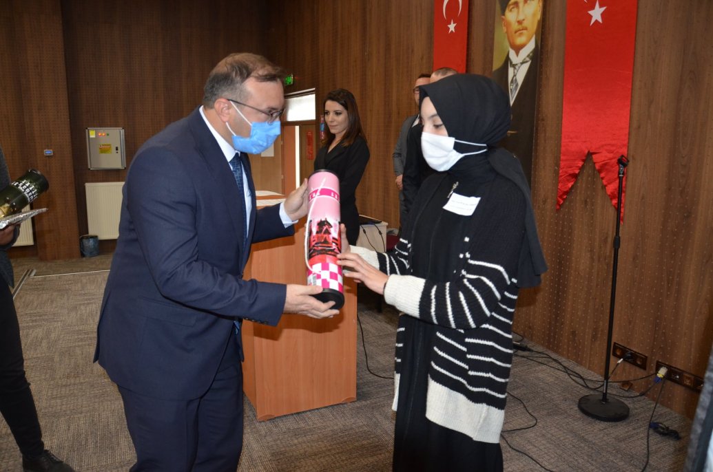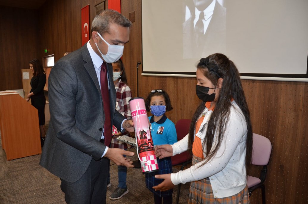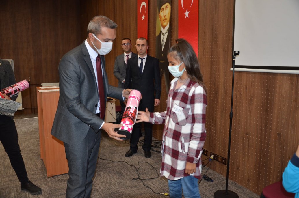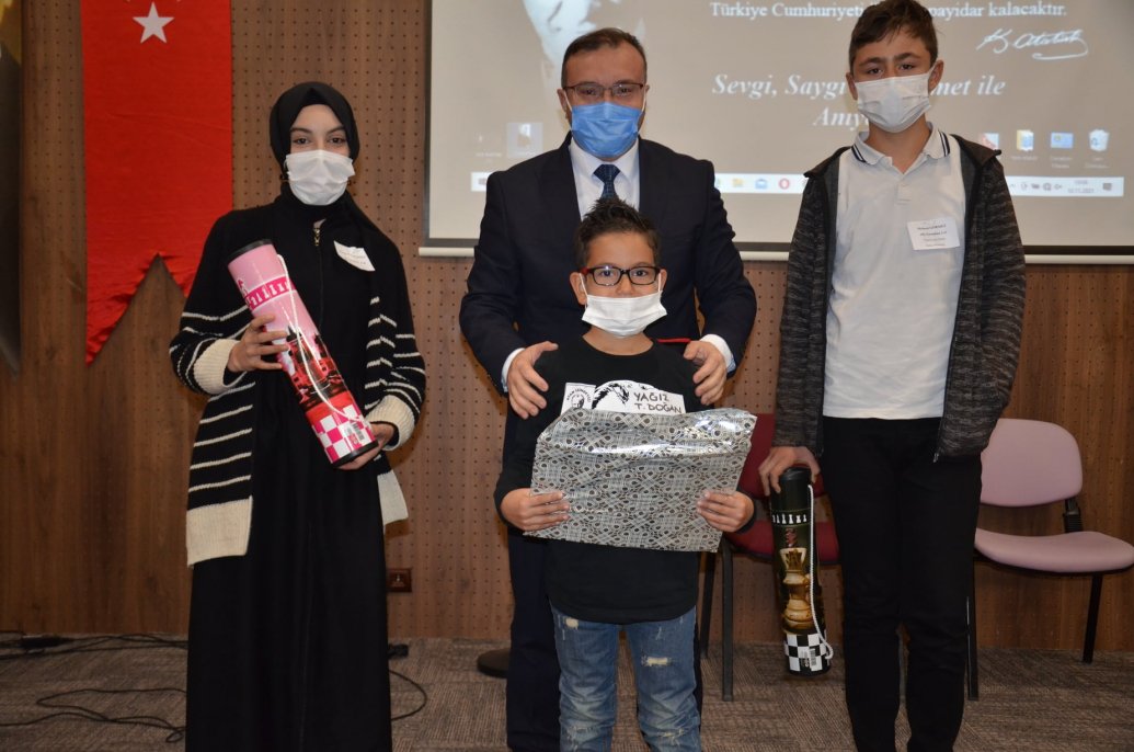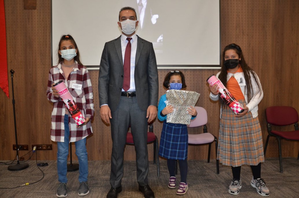Resim yarışmasında birinci olan 3 Eylül İlkokul öğrencisi Kevser Atkın, Afiş yarışması birincisi Ashaboğlu ortaokulundan Ebrar Sağlam, Şiir yarışması birincisi Gazi Emet Anadolu lisesi öğrencisi Seher Kayar’a ödüllerini Emet Kaymakamı Hasan Çiçek takdim etti.
