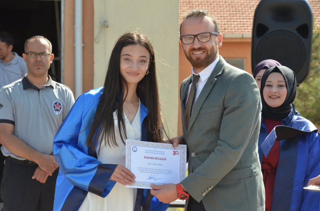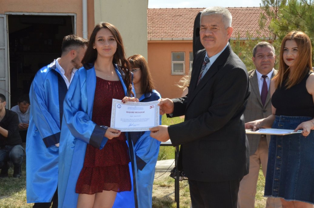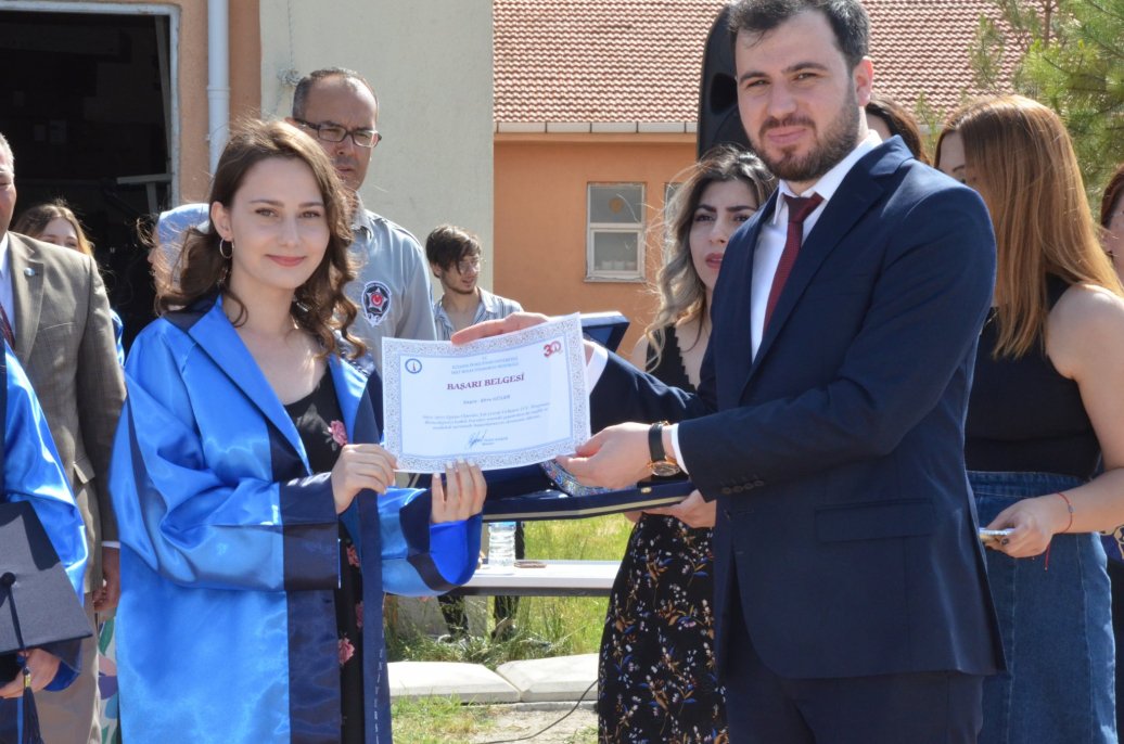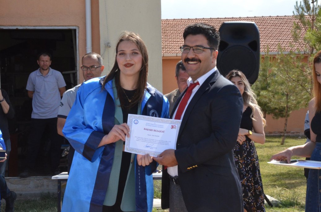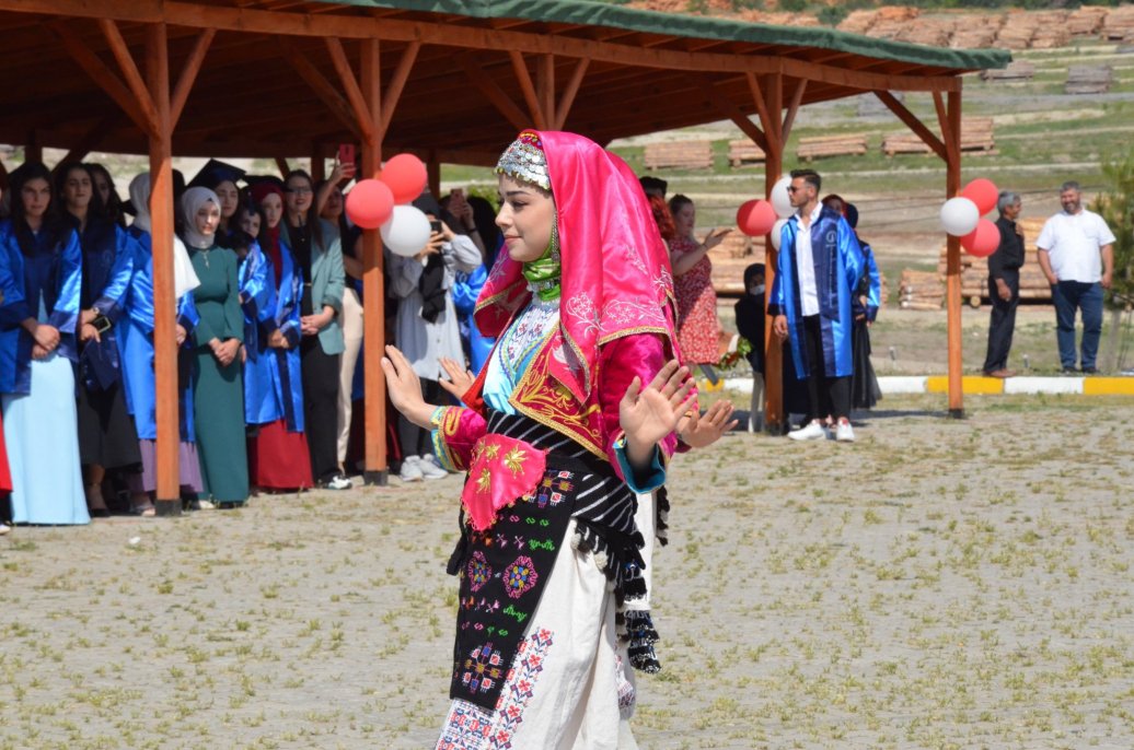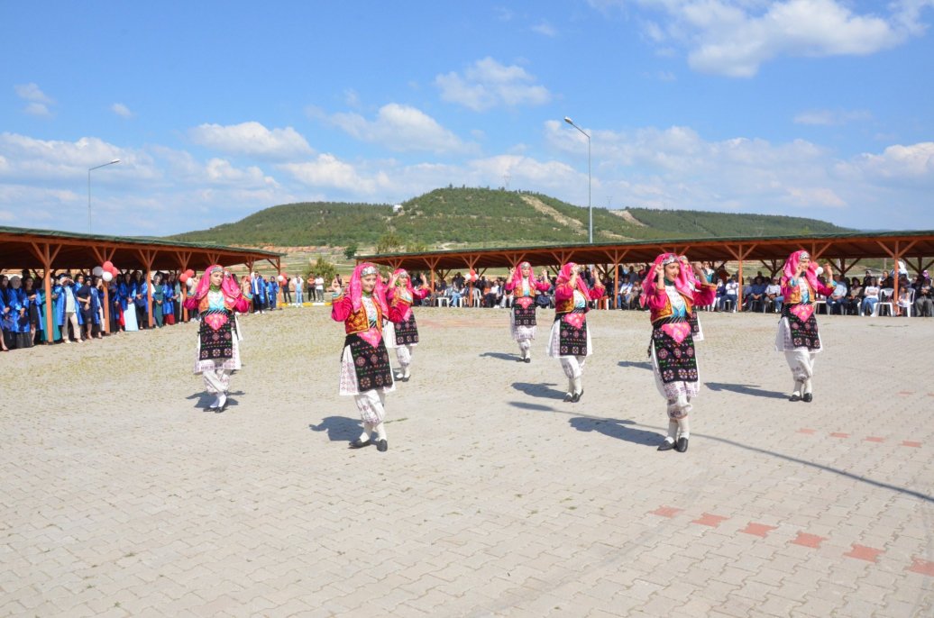 Mezuniyet töreninde Meslek Yüksekokulu halk oyunları ekibinin gösterileri ilgi ile izlendi. Daha sonra bölümlerinde ilk 3 dereceye giren öğrenciler protokol üyeleri tarafından belgelerini aldı.