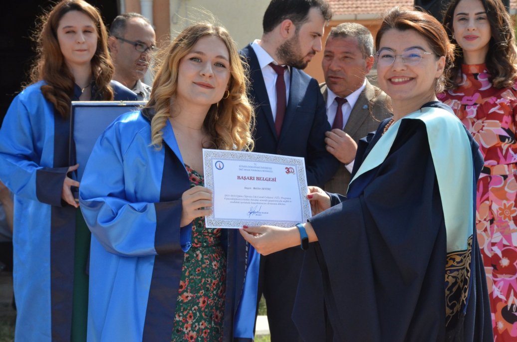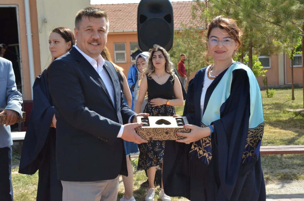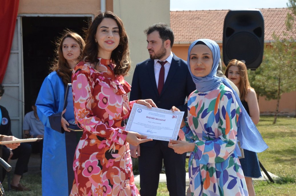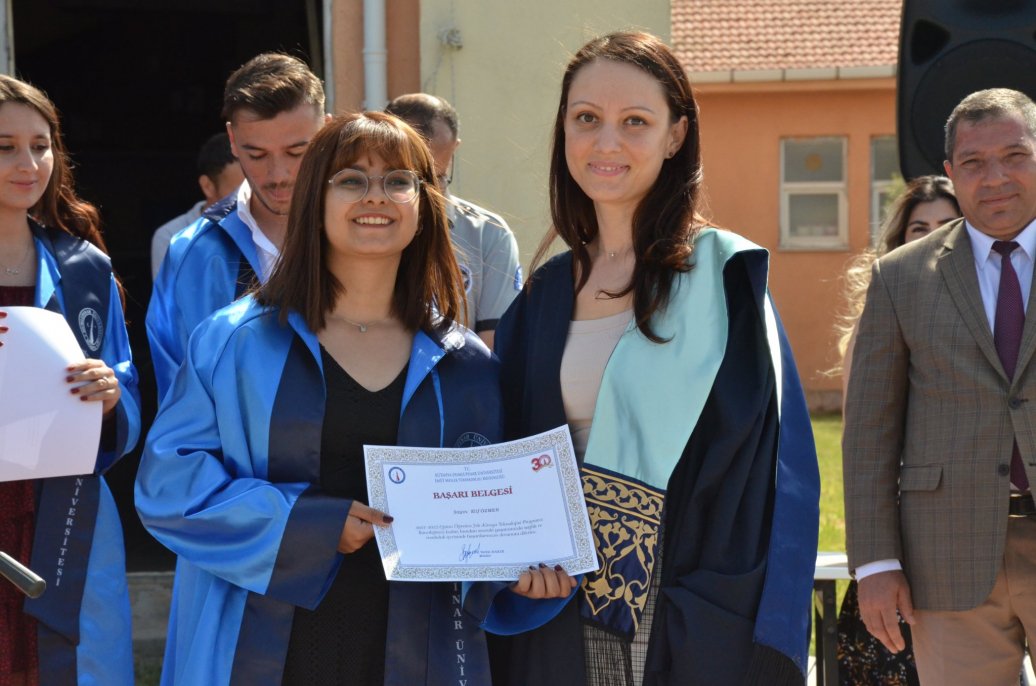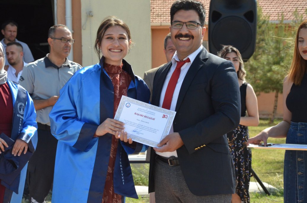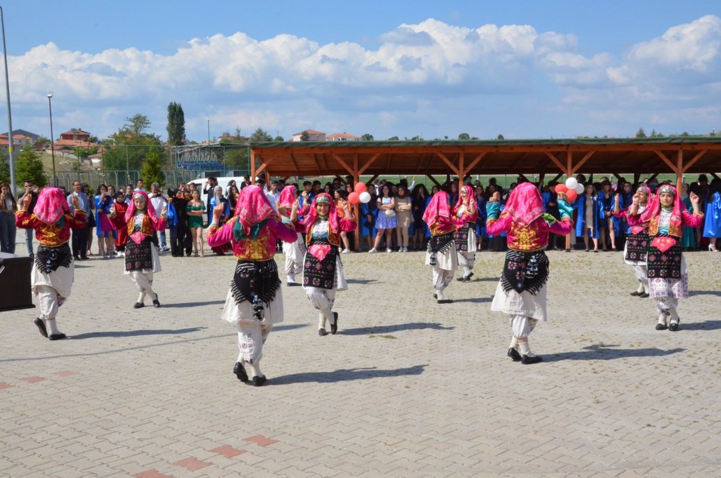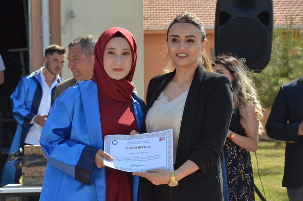 Mezuniyet töreninde Meslek Yüksekokulu halk oyunları ekibinin gösterileri ilgi ile izlendi. Daha sonra bölümlerinde ilk 3 dereceye giren öğrenciler protokol üyeleri tarafından belgelerini aldı.