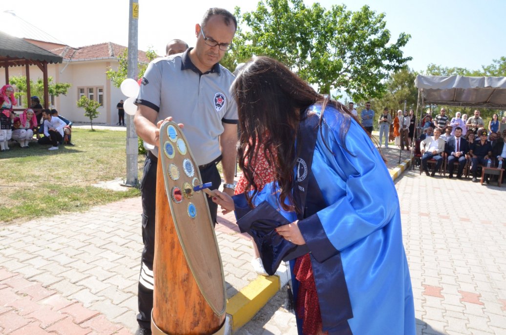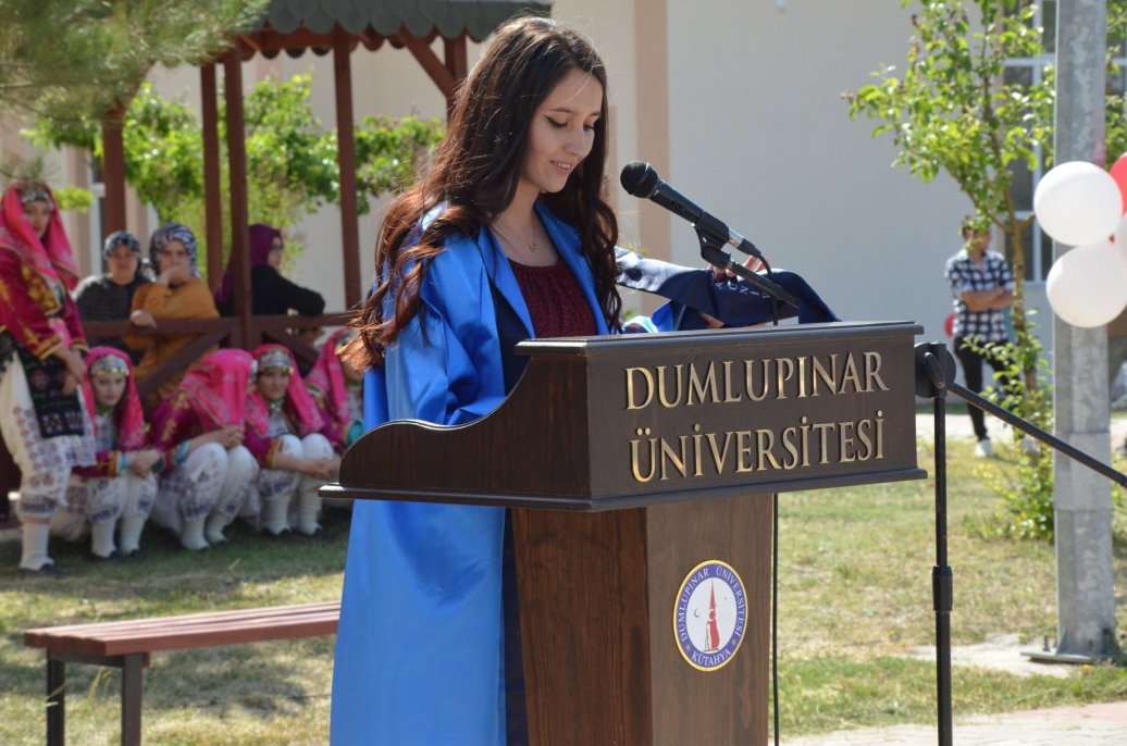 Mezun olan öğrenciler adına konuşma yapan ve son 3 dönemin değerlendirmelerine göre akademik yıl dönem birincisi olan Kimya teknolojisi öğrencisi Aysel İlgin okul hocalarına ve yönetime teşekkür eden bir konuşma yaparak,mezuniyet kütüğüne künyesini çaktı.
