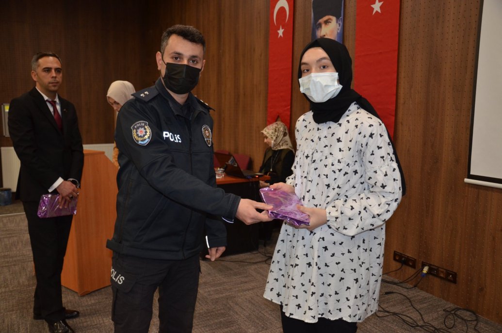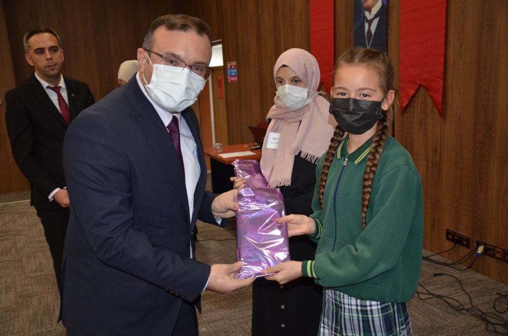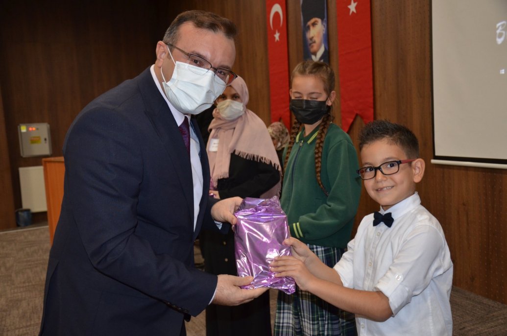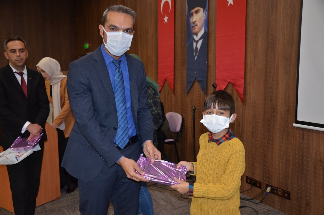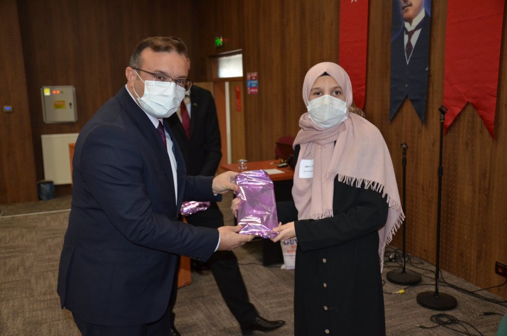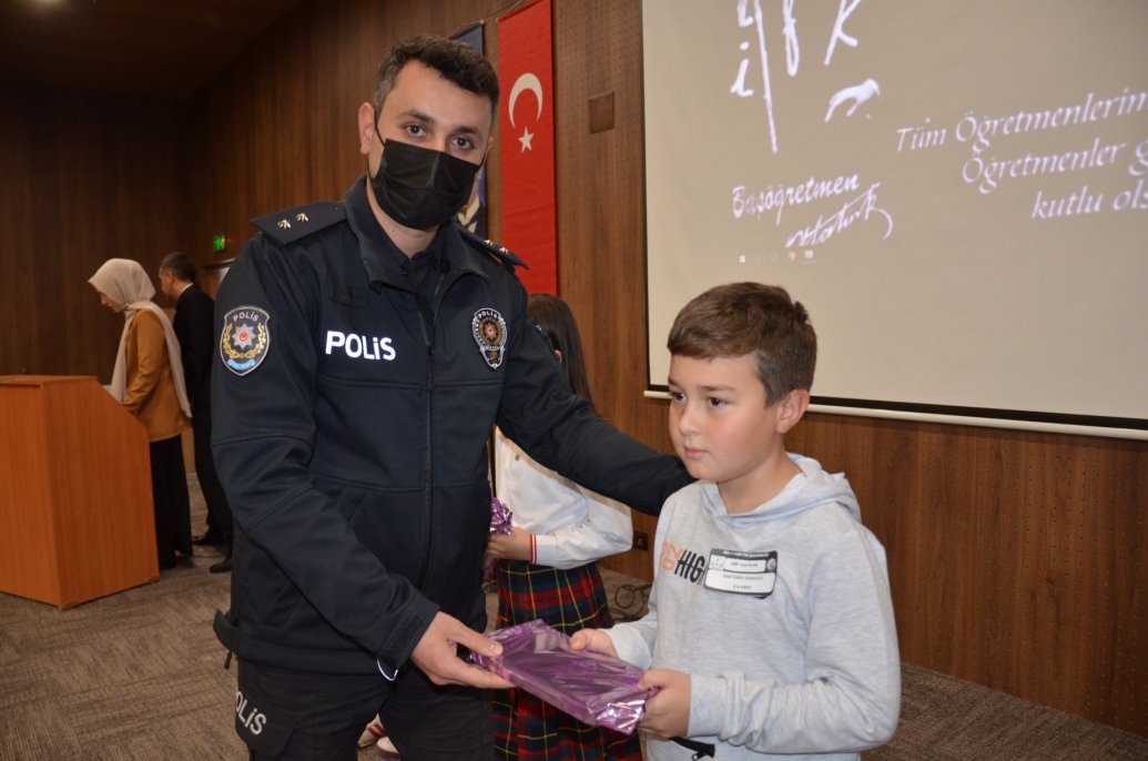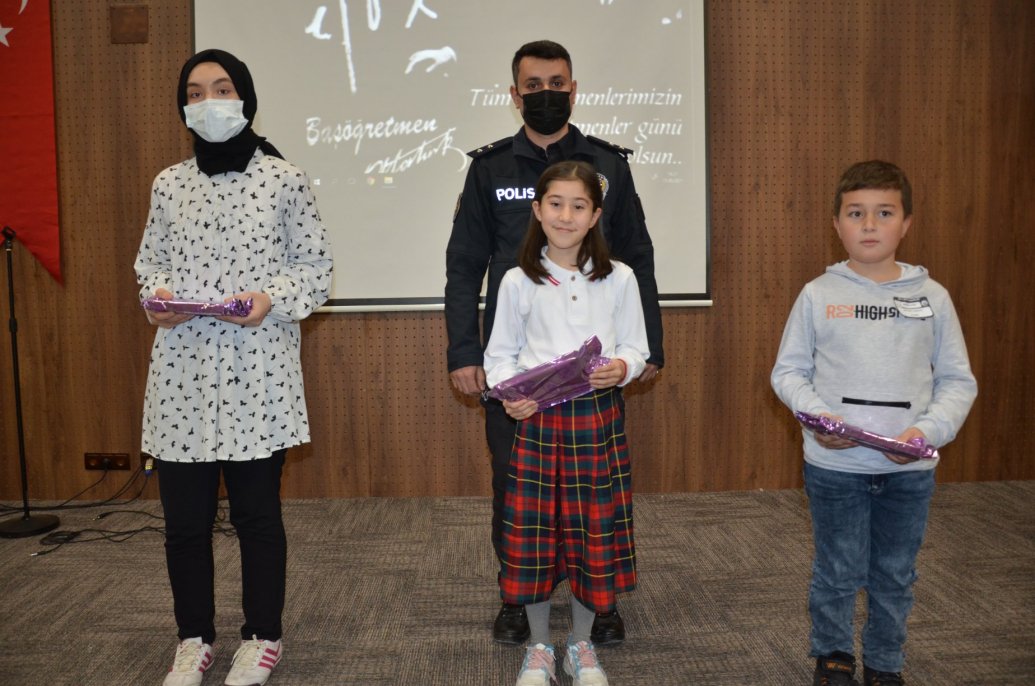 Öğretmenler haftası nedeniyle düzenlenen şiir, kompozisyon yarışmalarında dereceye giren öğrencilere protokol üyelerince hediyelerinin verildiği programda Emekli öğretmenleri temsilen Emekli Öğretmen Faruk Durmaz'a plaket takdim edildi.