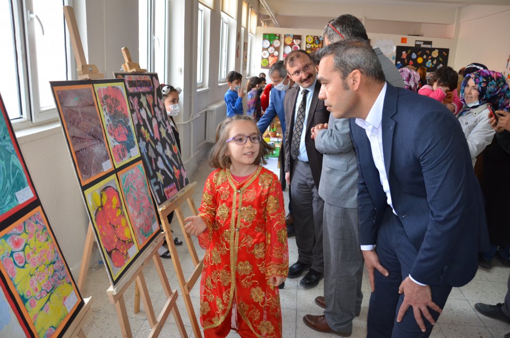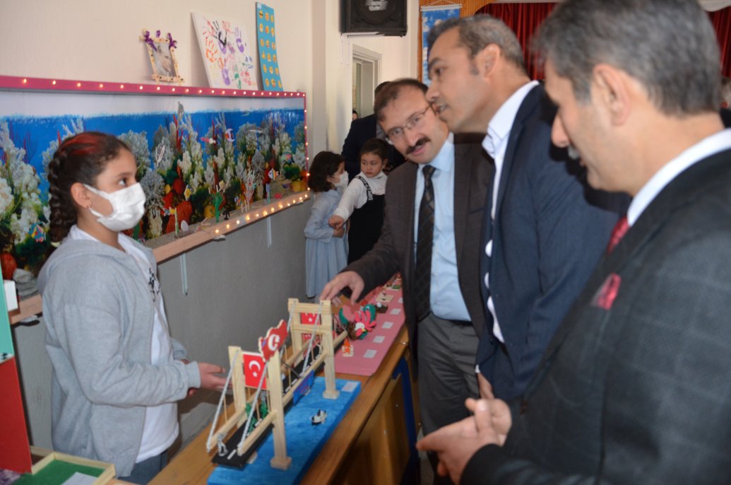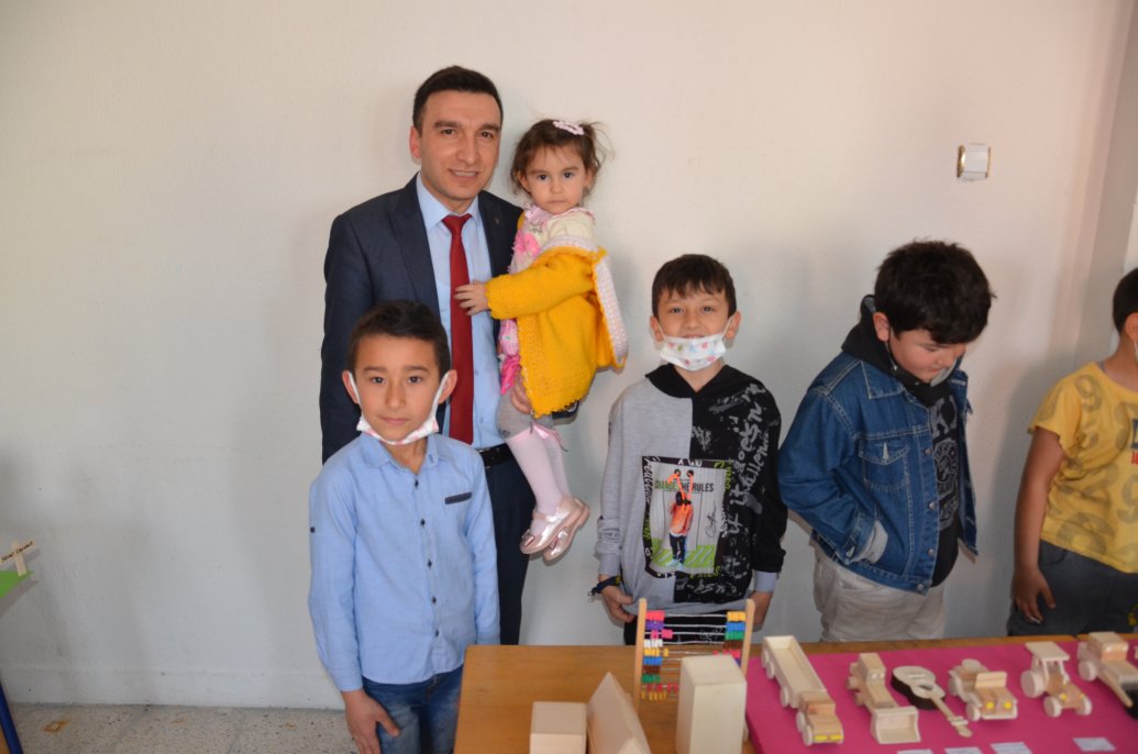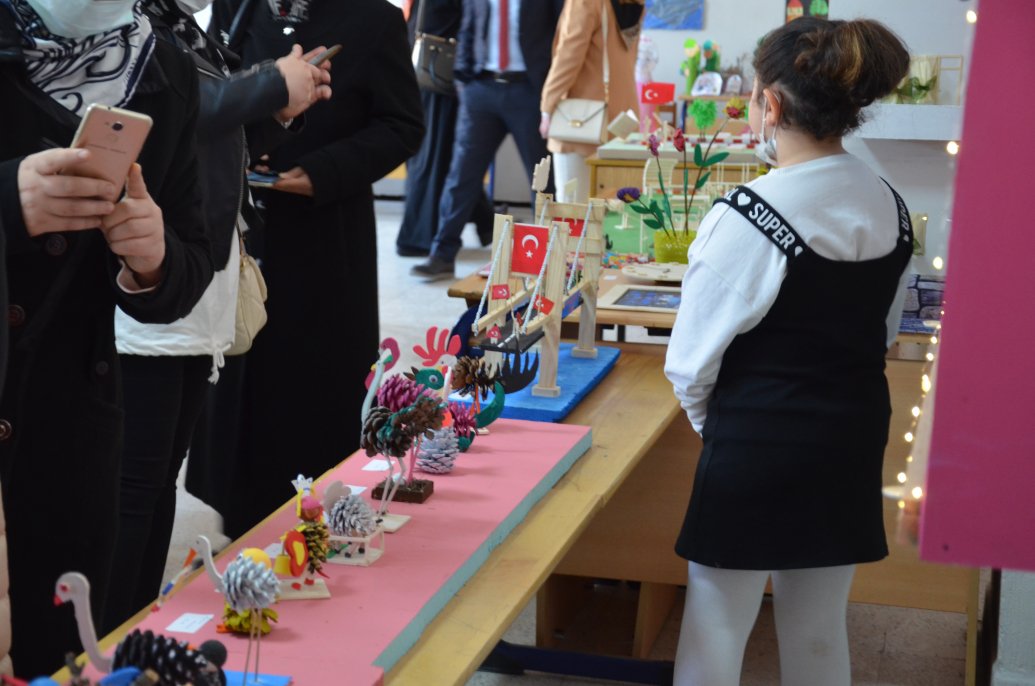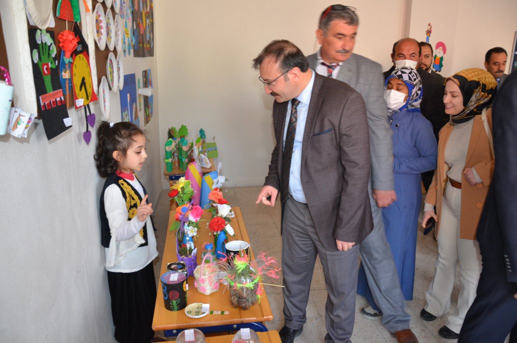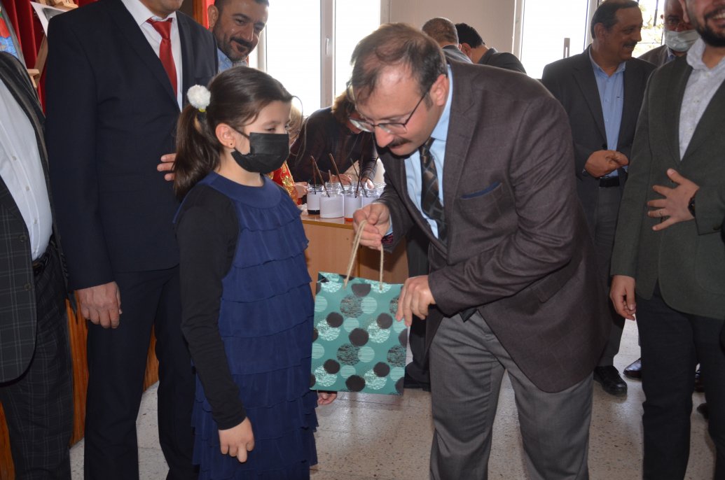 Çocuklarımızın hazırladığı bir birinden güzel eserler büyük takdir toplarken, minik öğrencilerimiz kendi yaptıkları ürünlerden kaymakam Çiçek ve Belediye Başkanımız Hüseyin Doğan'a hediyeler takdim ettiler.