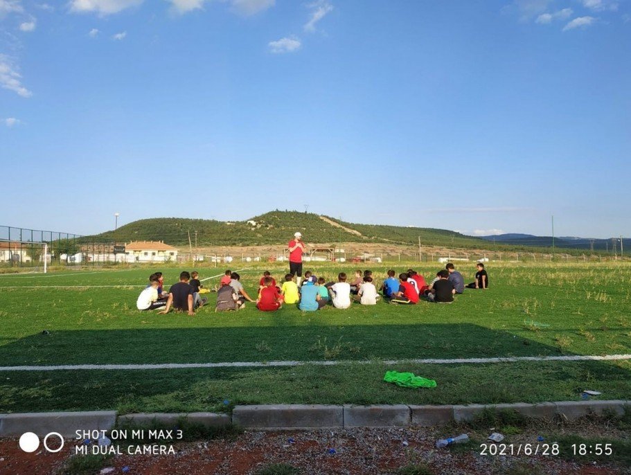 Eftal Ülker antrenörlüğünde her gün antrenman öncesi 15 dakika kitap okutturulan çocuklar daha sonra ilçe şehir stadında antrenman yapıyorlar.