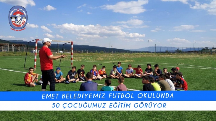 Emet belediyespor bünyesinde açılan futbol okulunda 6-14 yaş arası 50 çocuğumuz eğitim alıp spor yapıyor.