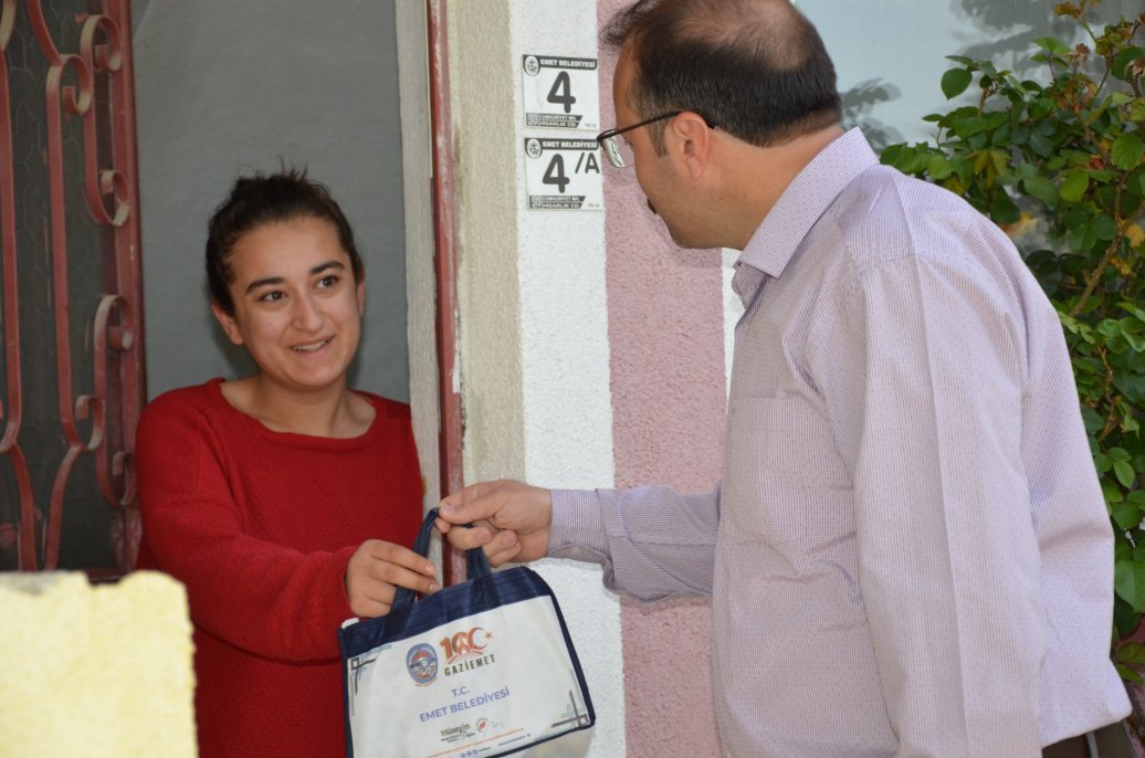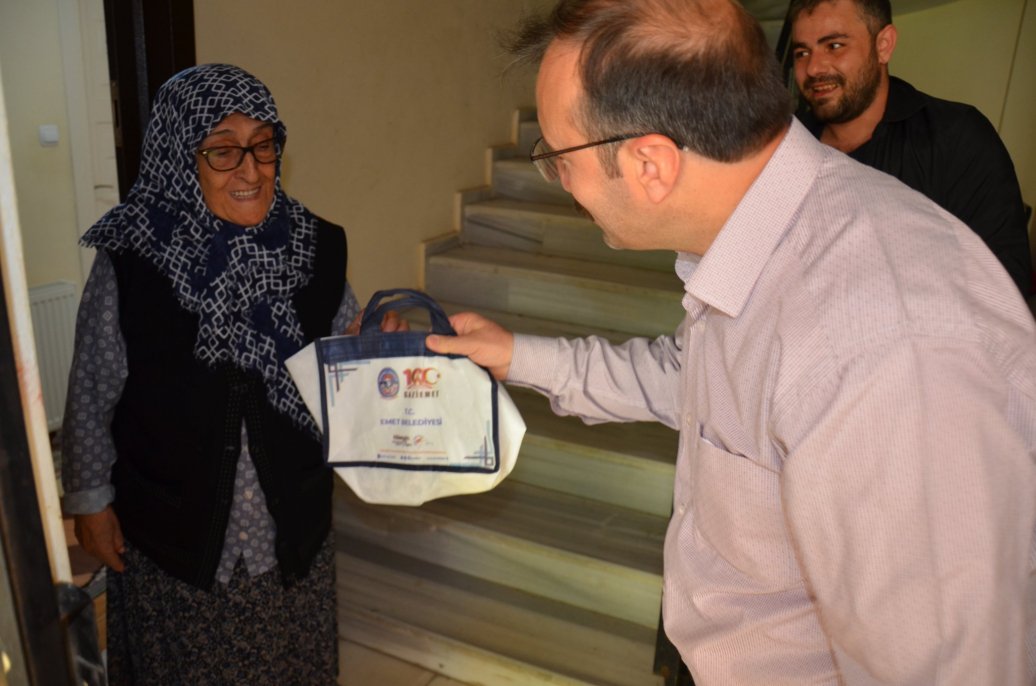 Emet Belediyemiz 2 yıl önce Ramazan ayında başlatılan ve geleneksel hale gelen Emet'te birlikte Bayram kahvaltıları' projesi kapsamında bu yılda tüm hanelere kahvaltılık kaşar ve sucuk dağıtım Çalışmalarında sona geliniyor gün boyu dağıtımlar devam ederken Bugün Hamam, Akpınar, Kaynarca , Cumhuriyet Mahallelerimizdeydik Dağıtıma Belediye Başkanımız Hüseyin Doğan bizzat katıldı