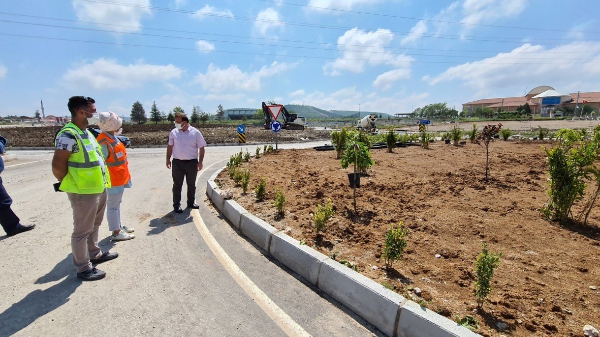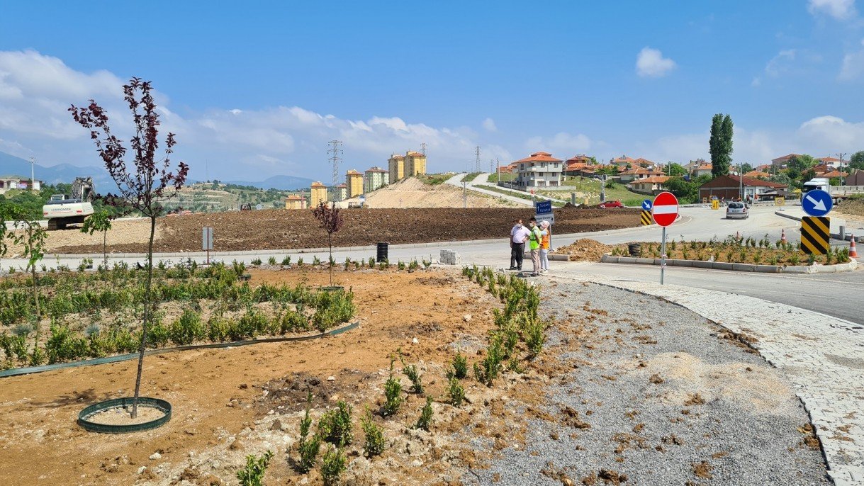 Emet ilçe girişinde yapımı tamamlanan ve hizmete açılan 650 metrelik akıllı kavşak 'ta Peyzaj çalışmaları sürüyor.