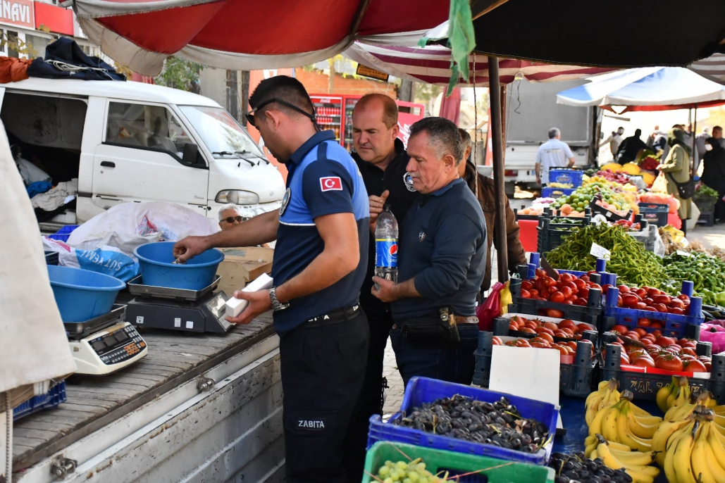 Yaklaşık 220 pazarcının giriş yaptığı ilçede belediye zabıta ekipleri terazi denetimleri, fiyat etiketleri, ve gıda denetimleri gerçekleştiriyor.