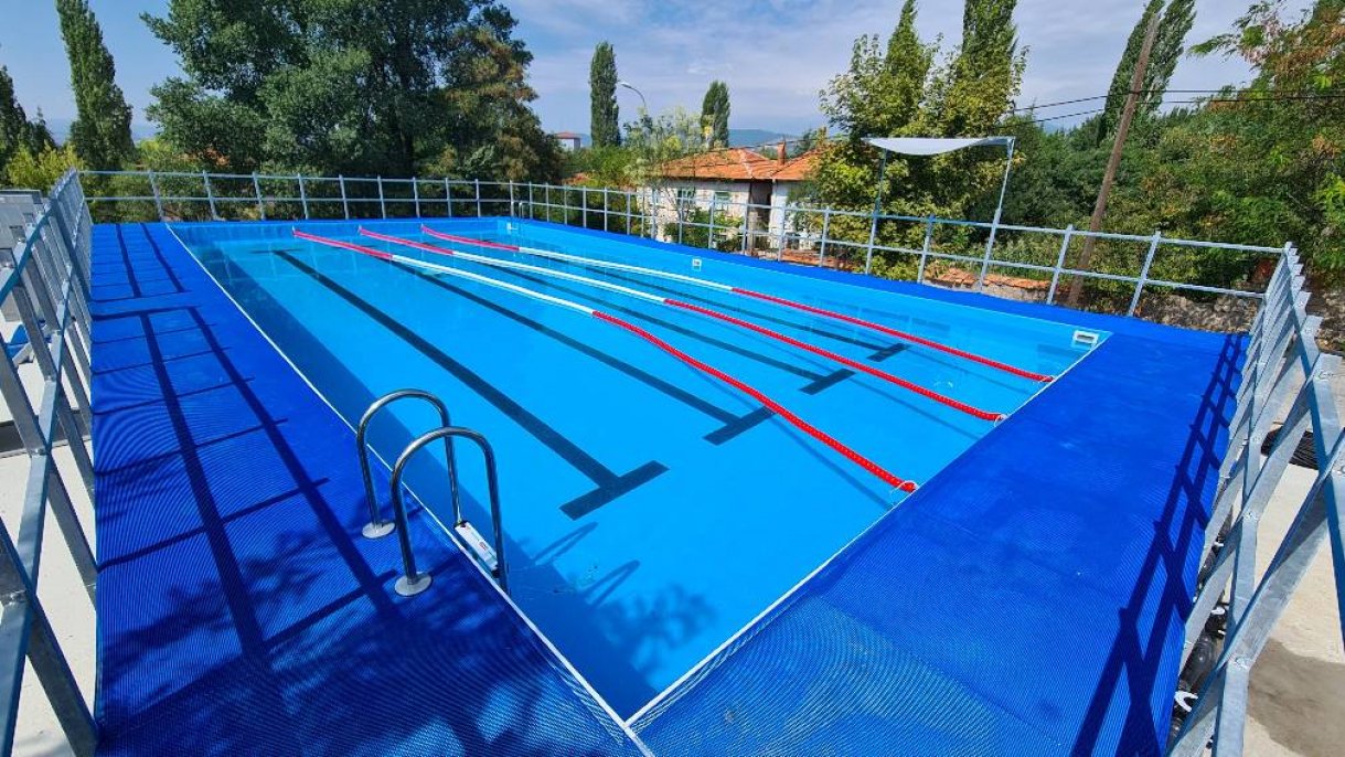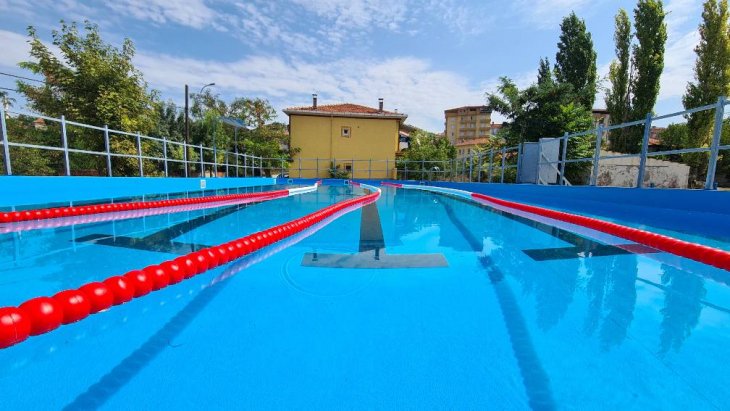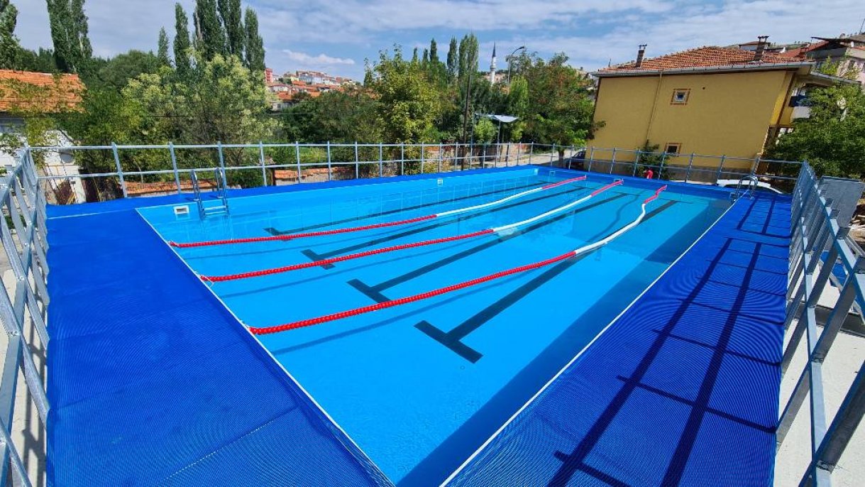 Emet ilçesine Gençlik ve Spor Bakanlığı ve Emet Belediyesi işbirliğiyle yapılan portatif yüzme havuzu inşasında sona geliniyor...