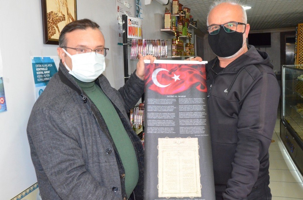 Esnaflarımıza İstiklal marşımızın basılı olduğu bez dokuma flama dağıtımına devam ediyoruz.