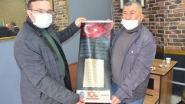 Emet Belediye Başkanımız Hüseyin Doğan tarafından bizzat başlatılan dağıtımla İstiklal marşımızın 10 kıtasının basımı yanısıra 12 Mart 1921’de Anadoluda yayınlanan Açıksöz gazetesinin orijinal basımının işlendiği bez dokuma flamalar dağıtılıyor.