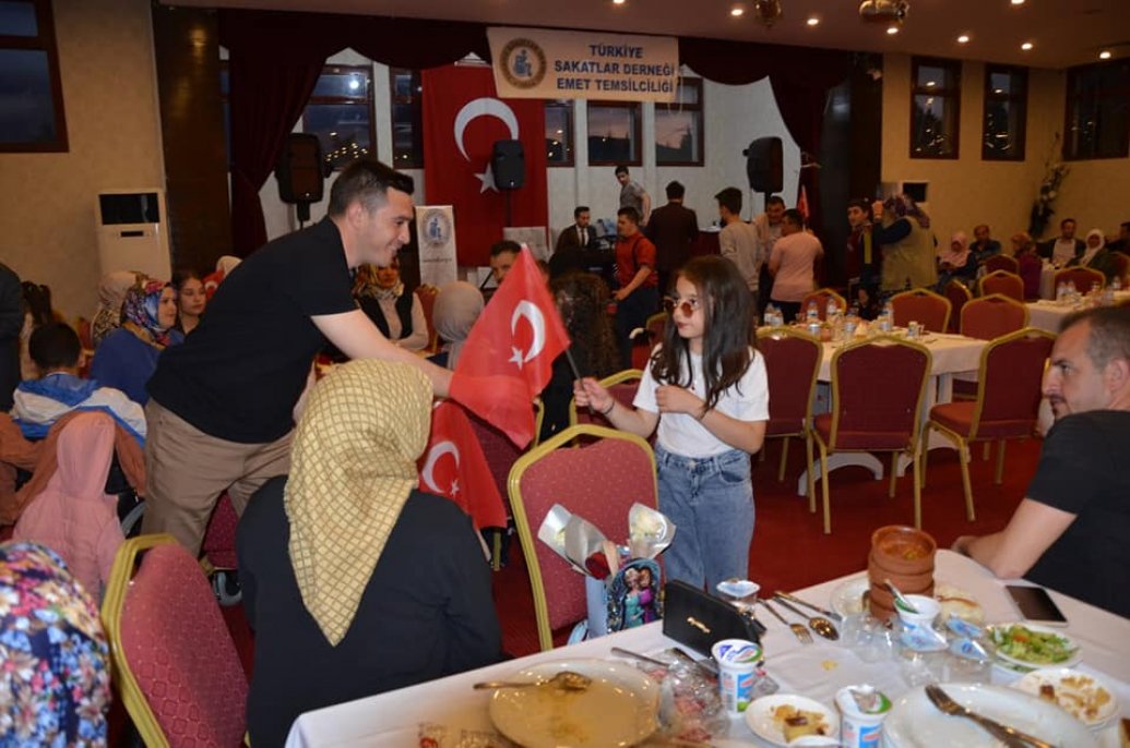 Emet Sakatlar derneği koordinesinde Yerel sanatçılarımızdan Muammer Akyol’un sahne aldığı gecede Emet Kaymakamı Hasan Çiçek,Emet Belediye Başkanımız Hüseyin Doğan, Emet jandarma komutanı Neşet Öztürk,Emet Emniyet müdürü Mehmet Akbulut , Emet oda başkanlarımız,Stk’larımız engelli vatandaşlarımız ve aileleri ile birlikteydi.