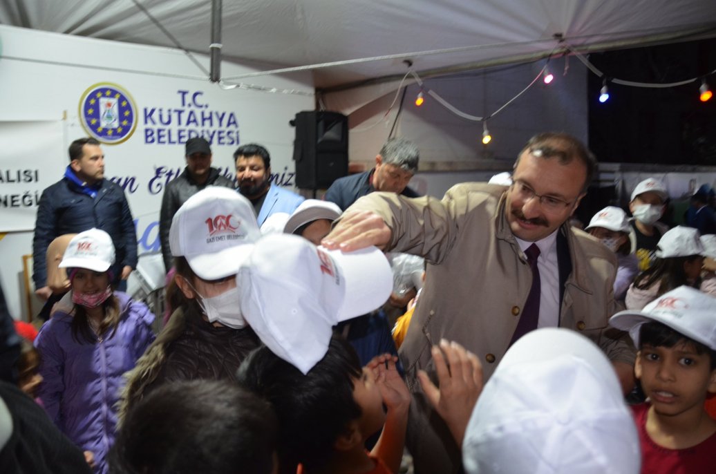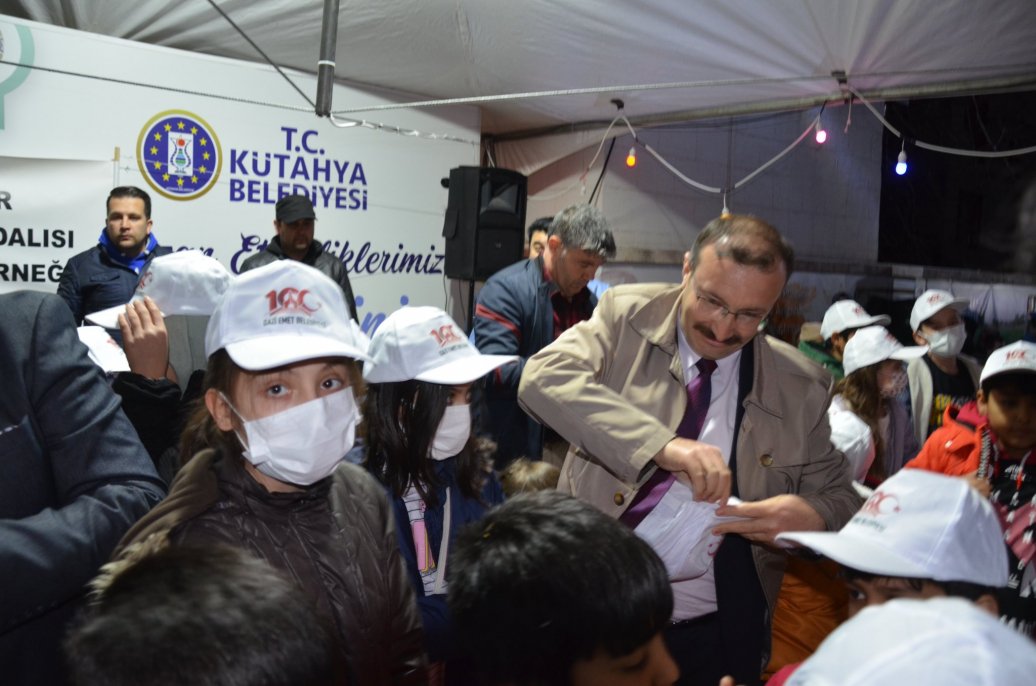 Emet belediye başkanım Hüseyin Doğan tarafından çocuklar başta olmak üzere geceye katılan halka Cevizdere Zaferi 100.yılıma özel tasarlanan şapkalar hediye etti.