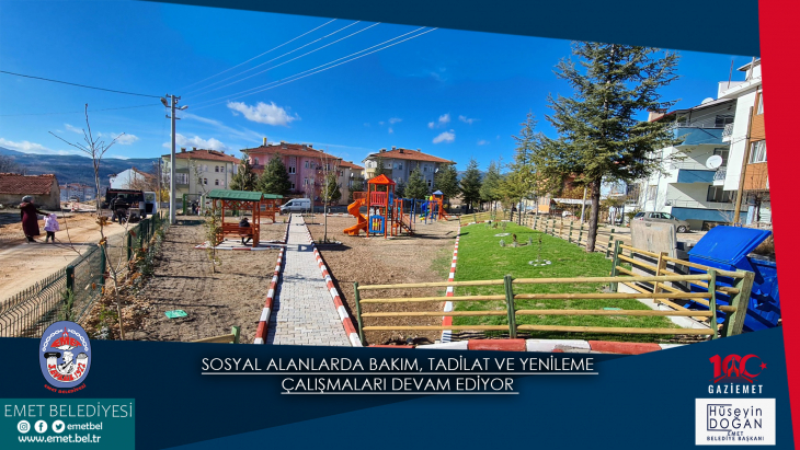 Emet belediyemzice İlçemizde bulunan sosyal alanlarda Park ve bahçelerde Bakım Onarım ve Yenileme Çalışmaları devam ediyor