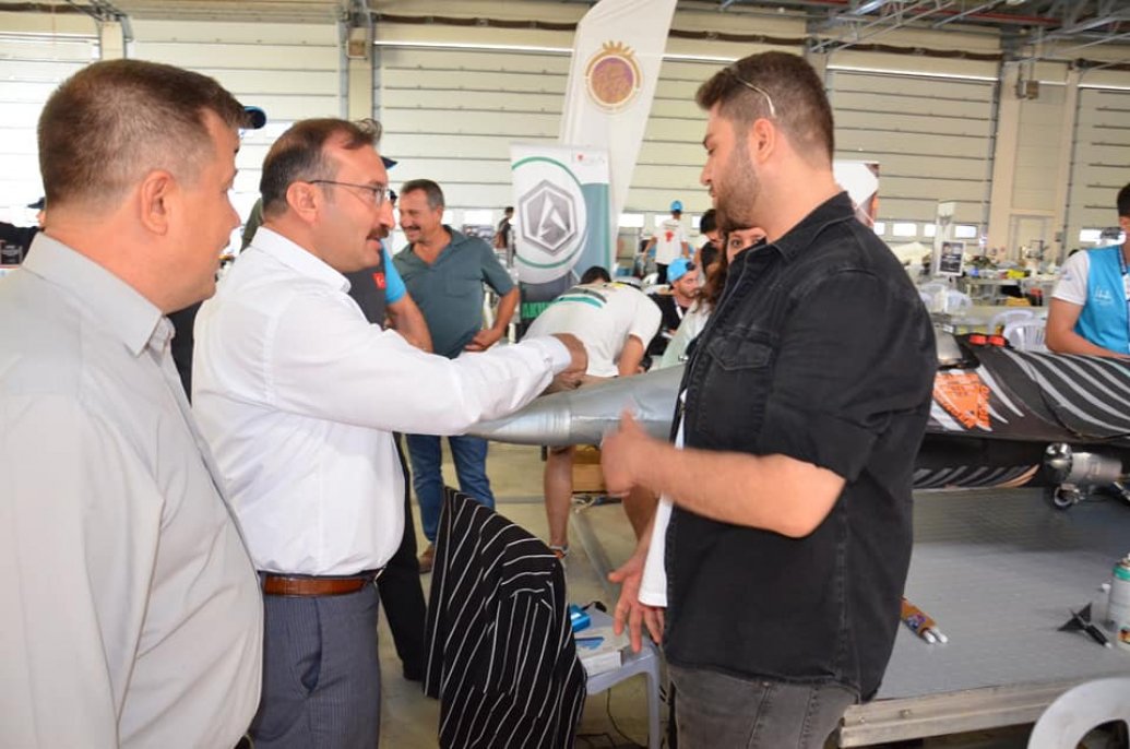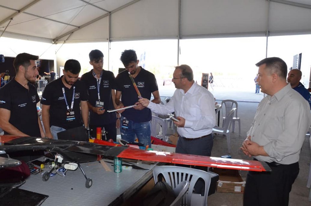 9-14 Ağustos tarihleri arasında Zafer Havalimanı’nda gerçekleşen uluslararası yarışmaya 2’si Pakistan, 1’i Polonya’dan olmak üzere toplamda 96 takım ve yaklaşık bin yarışmacı katılıyor. Başkanlar öğrenci yarışmacıları ziyaret ederken teknik bilgi alıp başarı dileklerini ilettiler.
